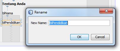 1. Pilih Text Field yang ada di bagian Pallete -> Swing Control